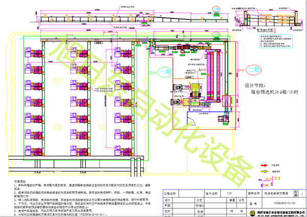 此方案為車間內21臺生產設備只需要1人看管,1人放紙箱及轉運碼好垛的成品成品即可,由以前的15人減少到了兩人,極大的節省了人工成本。本方案實現了紙箱自動開箱封底、自動箱內套袋、空箱按機臺要箱指令自動貼標、自動送至指定機臺。裝好產品...