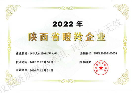 近日陜西省科學技術廳發布了《陜西省科學技術廳關于公布2022年陜西省瞪羚企業名單的通知》,漢中大秦機械有限公司成功入選“2022年度陜西省瞪羚企業名單”